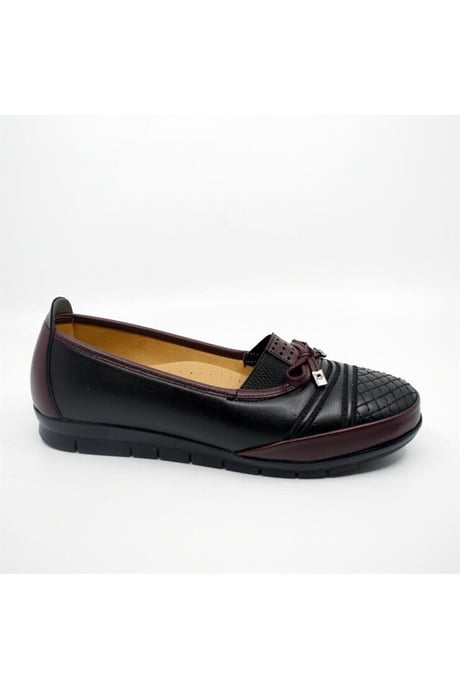 Eslem Siyah-Bordo Ortopedik Anne Ayakkabısı Deri