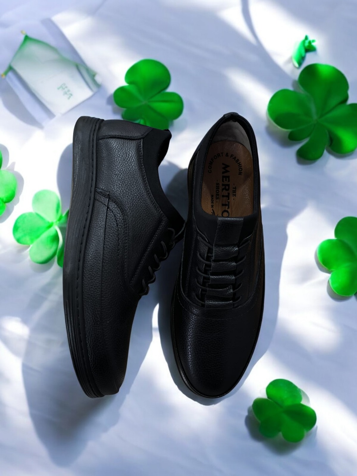 Mertto Siyah Erkek Deri Ayakkabı'nın tabanı, kaymaz dış yapısı sayesinde zeminle mükemmel bir tutuş sağlar. Hem iç mekanlarda hem de dış mekanlarda güvenle yürüyebilmenize imkân tanır. Sert zeminlerde bile dengeli bir duruş sergileyerek, düşme riskini minimize eder.
