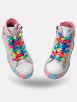 Unicorn Hologram Ortopedik Kız Sneakers 03, pembe, mor ve beyaz renklerin mükemmel kombinasyonu ile tasarlanmıştır. Bu renk paleti, çocukların enerji dolu karakterlerini yansıtırken, aynı zamanda her türlü kıyafetle kombinlenebilir bir şıklık sunar. Hem günlük kullanıma hem de özel etkinliklere uygun bir seçenek sunmaktadır.